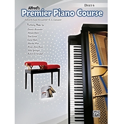 Alfred's Premier Piano Course: Duet Book 6 includes motivational music that reinforces concepts introduced in Lesson Book 6. These duets for one piano, four hands continue the strong pedagogical focus of the course while providing the enjoyment of playing with a friend or family member. Written by America's leading pedagogical composers, these duets contain equally leveled parts for secondo and primo. Within each duet, melodic material is shared between the parts. Styles and forms include jazz, ragtime, pieces in Romantic and Contemporary styles, and an arrangement of the famous Canon in D of Johann Pachelbel. Titles: Baltic Dance (Wynn-Anne Rossi) * Canon in D (Arr. Carol Matz) * Changing Times (Robert D. Vandall) * Friday Night Jazz (Melody Bober) * The Great Expanse (Tom Gerou) * Reflections in the Waves (Mike Springer) * Romance in A-flat Major (Dennis Alexander) * Wildflower Rag (Martha Mier).