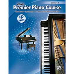 Alfred’s Premier Piano Course Level 5 students develop their rhythm skills using sixteenth notes in 3/8 and 6/8 time. A special focus is a stylistic introduction to the Baroque and Classical masterworks. Additional pieces range from lyrical ballads and jazz styles to arrangements of familiar classic and folk themes. New concepts introduced include augmented triads, grace notes and additional scales and keys. Each piece on the CD was recorded at a performance tempo and a slower practice tempo.