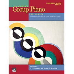Alfred's Group Piano for Adults, Ensemble Music Book 1 is designed to be used in conjunction with Alfred's Group Piano for Adults, Book 1. Included in the book is repertoire for piano duet, two pianos, and multiple pianos. The pieces were chosen to appeal to non-keyboard music majors with little or no keyboard experience. The pieces are sure to bring hours of enjoyment while reinforcing important musical concepts.Teacher-Student Duets: Bagpipes (Arthur Foote) * Dance (Cornelius Gurlitt) * Drivin' Boogie (Melody Bober) * Hungarian Melody (Arnoldo Sartorio) * In the Boat (Arnoldo Sartorio) * Little Waltz (Arnoldo Sartorio) * Round Dance (Arnoldo Sartorio) * Waltz (Cornelius Gurlitt) * Winter Waltz (Melody Bober)Student-Student Duets: Beethoven's Boogie (Mary K. Sallee) * Copycat (Carol Matz) * Drum Circle (Dennis Alexander) * Ice-Skating (Jon George) * A Mysterious Adventure (Melody Bober) * Red Robin Rag (Robert D. Vandall) * Santa Fe Sunset (Martha Mier) * Sour Lemons! (Dennis Alexander) )Second Piano Parts for Solo Repertoire: The Bear (Vladimir Rebikov) * Burleske (Leopold Mozart) * Dance (Joachim van der Hofe) * Minuet in F Major (Leopold Mozart) * Rondino (Jean-Philippe Rameau) * Waltz (Anton Diabelli)Duet Parts for Hanon Exercises: Exercise No. 1 (Melody Bober) * Exercise No. 2 (Melody Bober) * Exercise No. 3 (Melody Bober) * Exercise No. 5 (Melody Bober)Multiple Piano Ensemble: Michael, Row the Boat Ashore (arr. Robert D. Vandall)
