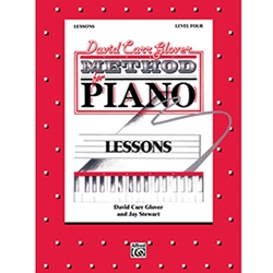 LESSONS, Level Four, from the DAVID CARR GLOVER METHOD FOR PIANO reviews the basic concepts presented in LESSONS, Level Four. New concepts are introduced and reinforced sequentially through the use of original compositions, folk songs, and the sounds of today. This book, combined with the recommended supplementary materials, continues to assist the student in developing the ability to read and perform musically through interval recognition, sight reading and ear training. The DAVID CARR GLOVER METHOD FOR PIANO has been created to provide an enjoyable program of piano instruction which is pedagogically sound.