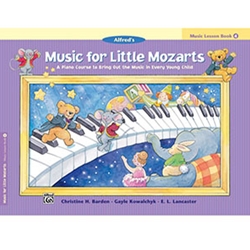 Lesson Book 4 is the last in the Music for Little Mozarts series. After a review, the new concepts taught are: Flat and sharp sign; Tie; Crescendo and diminuendo. After reviewing C position and Middle C position, G position is taught. All three positions are used alternately throughout the rest of the book, with flat and sharp notes incorporated. When the student is finished with Lesson Book 4, he/she moves into Alfred's Basic Piano Library, Prep Course, Level C or Alfred's Premier Piano Course, Level 1B.