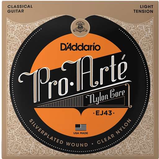 EJ43 is the lightest tension available of D'Addario's best selling Pro-Arte series. Great for beginners or experienced players with a lighter touch, they provide ease of play without sacrificing rich tone. EJ43's contain silver wound on nylon bass strings with clear nylon trebles.