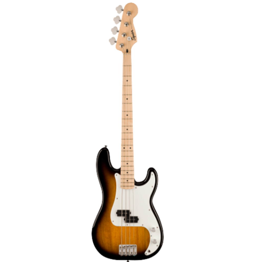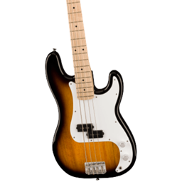 The Squier Sonic® Precision Bass® is ready to launch any musical adventure into warp speed, offering iconic Fender® style and inspiring tone for players at any stage. This P Bass® sports a slim and inviting "C"-shaped neck profile with a narrow 1.5" nut width and a thin, lightweight body for optimal playing comfort while a Squier® split single-coil pickup delivers punchy bass tone. Further details of this model include a 4-saddle hardtail bridge for precise intonation adjustment, open-gear tuning machines for smooth, accurate tuning and durable chrome-plated hardware that is sure to catch the spotlight.