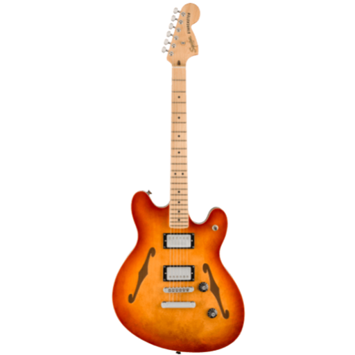 The Starcaster® broke the mold of semi-hollow guitar design with its offset body shape when it was introduced in the '70s, offering versatile sound and out-of-this-world styling for the most adventurous players. The Affinity Series® Starcaster Deluxe features several player-friendly refinements such as a lightweight semi-hollow body, a slim and comfortable “C”-shaped neck with familiar Stratocaster® headstock, an adjustable bridge with stop tailpiece for solid tuning stability and sealed die-cast tuning machines with split shafts for smooth, accurate tuning and easy restringing. Loaded with a pair of Squier humbucking pickups with 3-way switching for genre-defying sonic variety, this model is ready to accompany any player at any stage.